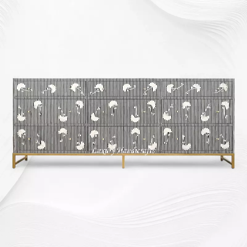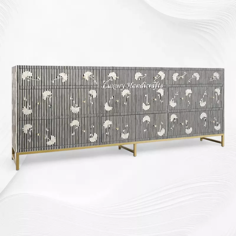 Handcrafted bone inlay buffet reinforced with tropical hardwood |