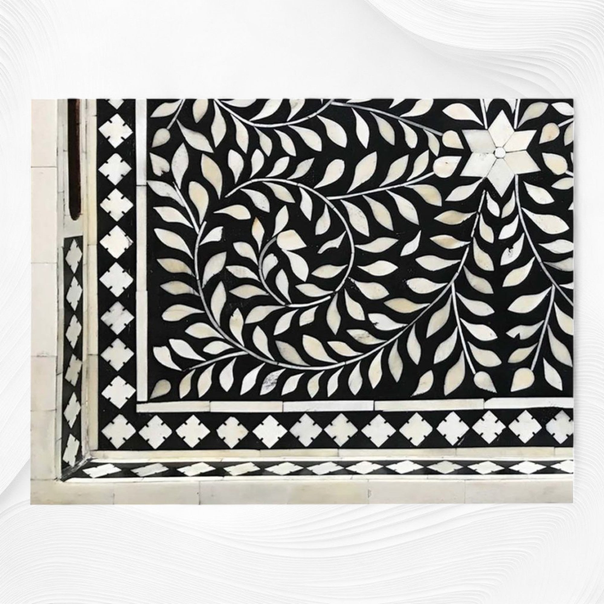Handcrafted with Bone and Resin by Luxury Handicrafts. This Black Bone Inlay Rectangular Tray gives your home interior a Luxurious look. Use it, for highlighting your decorative Vase or showcase precious jewels, etc.
