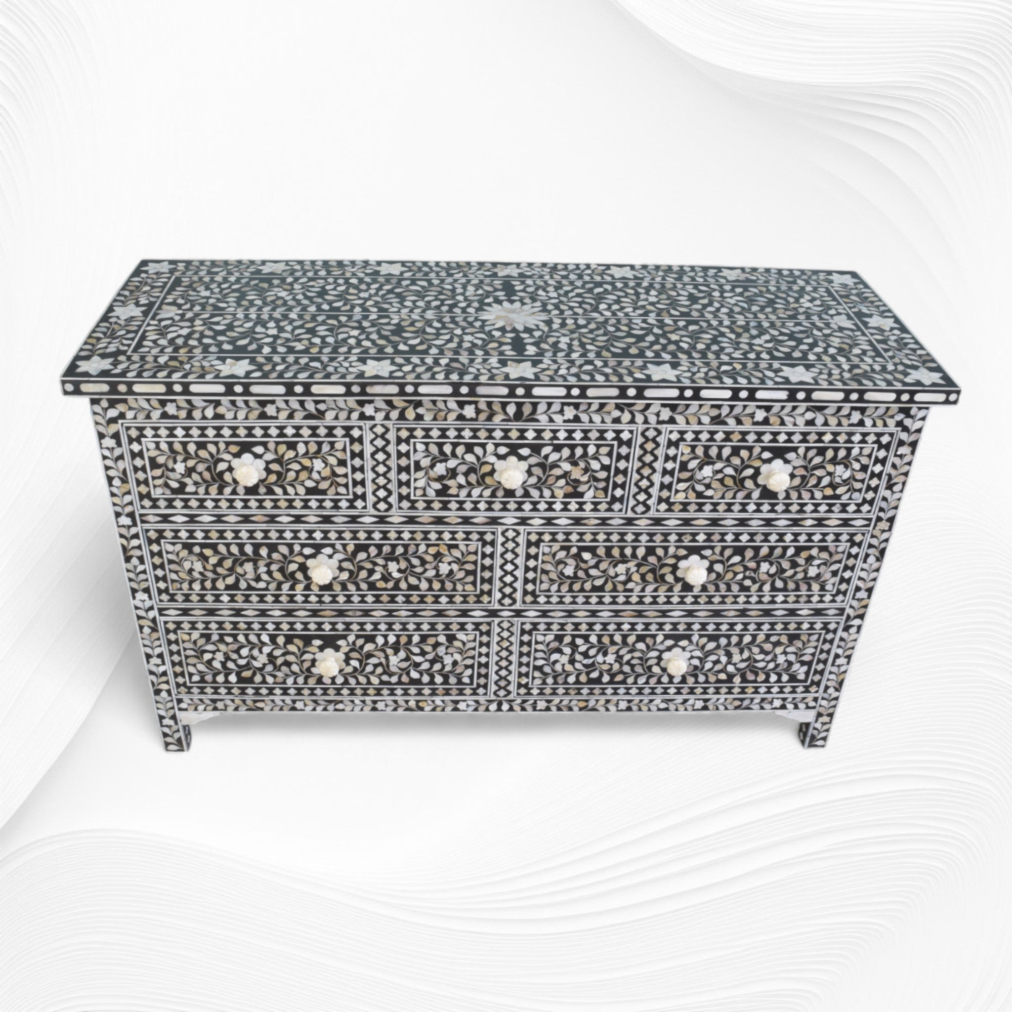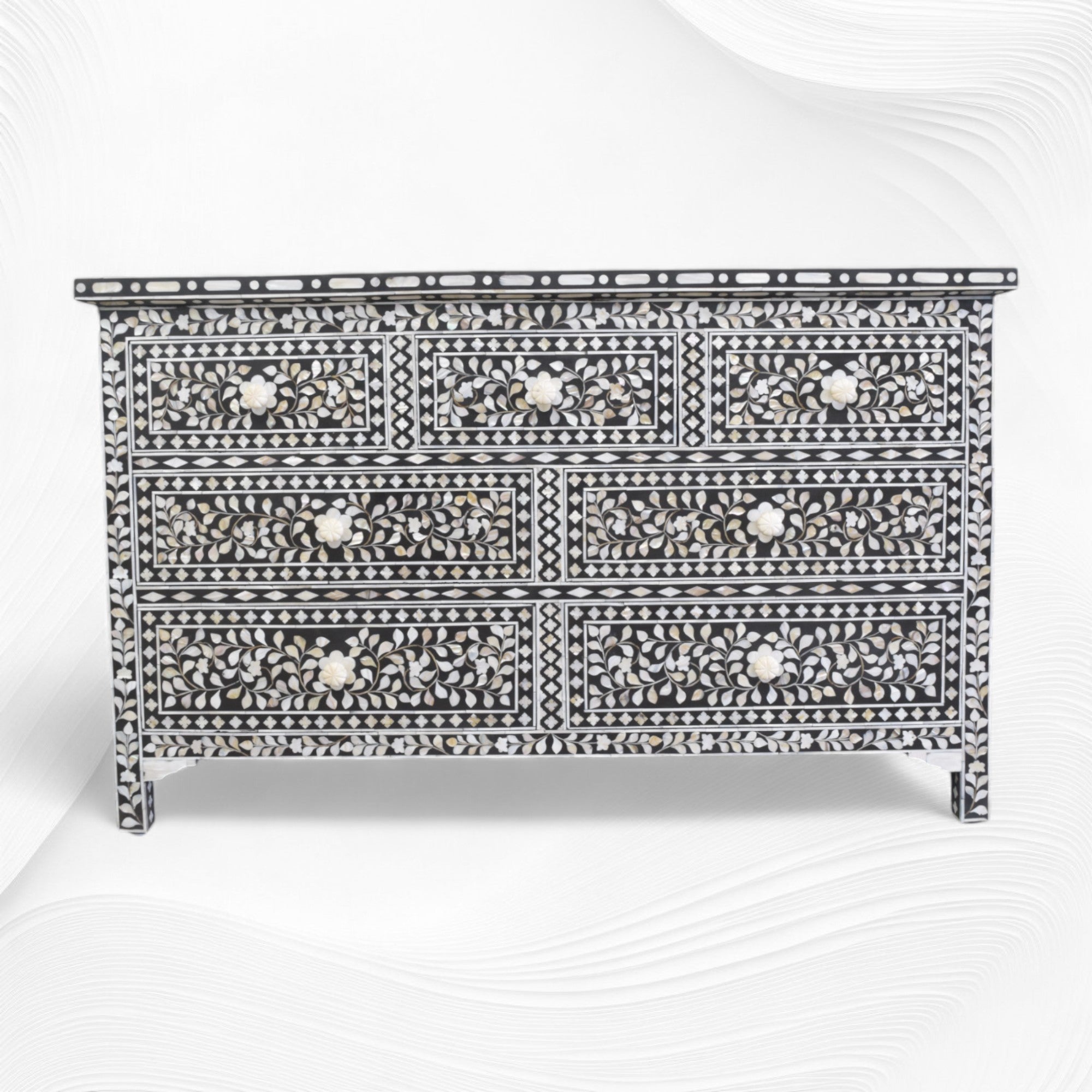 Black Mother Of Pearl Inlay Chest Of 7 Drawers Large