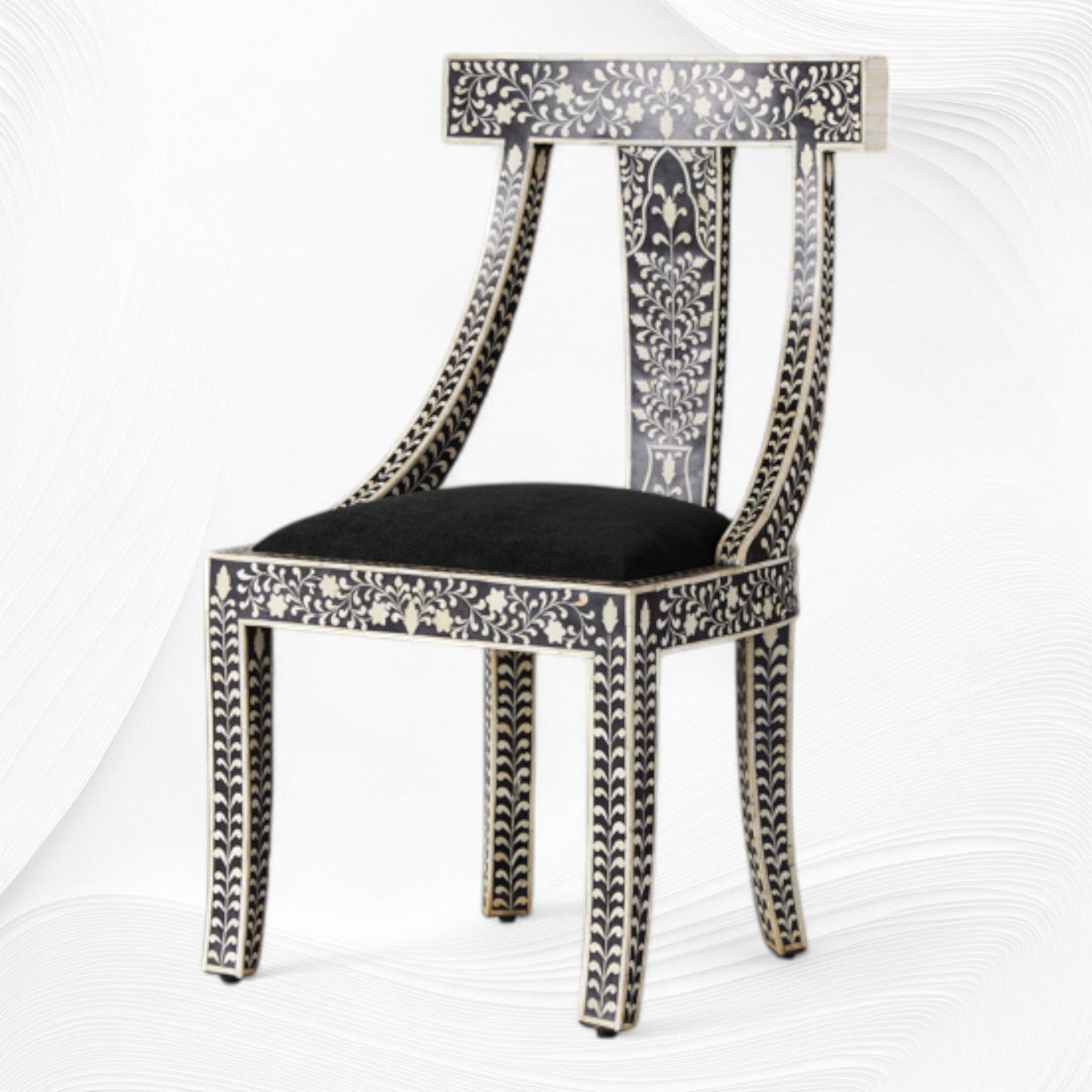 This black and white bone inlay chair, with designer inlay work design, are traditionally reserved for Rajasthan’s royal families in India. Find your inner Prince or Princess with these inlay beauties!
