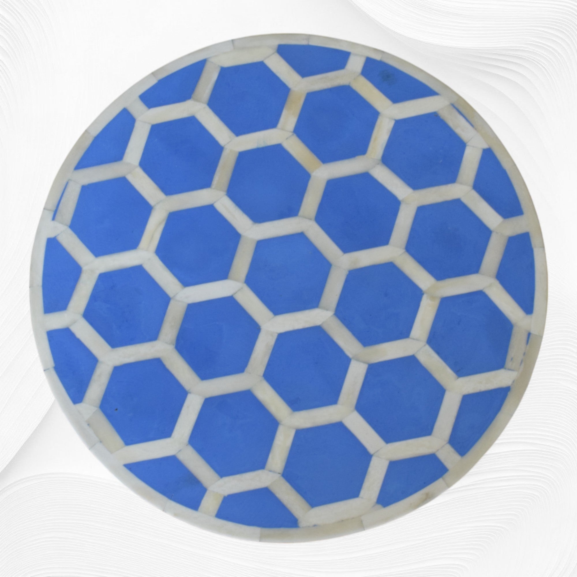 Bone Inlay Round Stool Honeycomb Design Light Blue