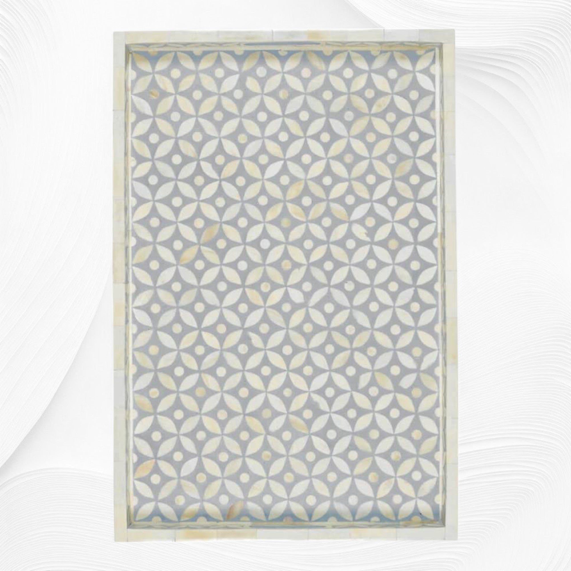 Geometric Bone Inlay Tray Grey | Bone Inlay Serving Tray