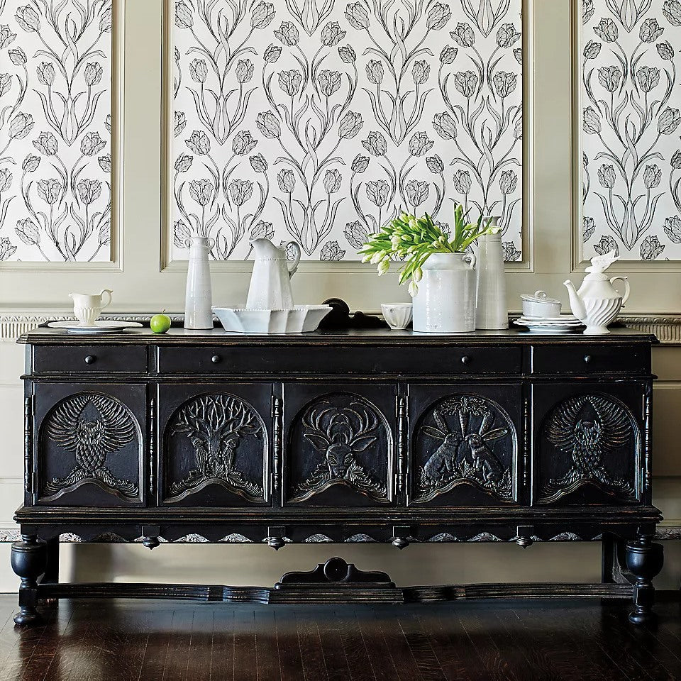 With fine design in mind, and wildlife as our muse, we've created an enchanting piece that's a natural fit for your dining room. Meticulously Handcarved over the course of 20 days, it features stylized foliage and a bevy of woodland wanderers.