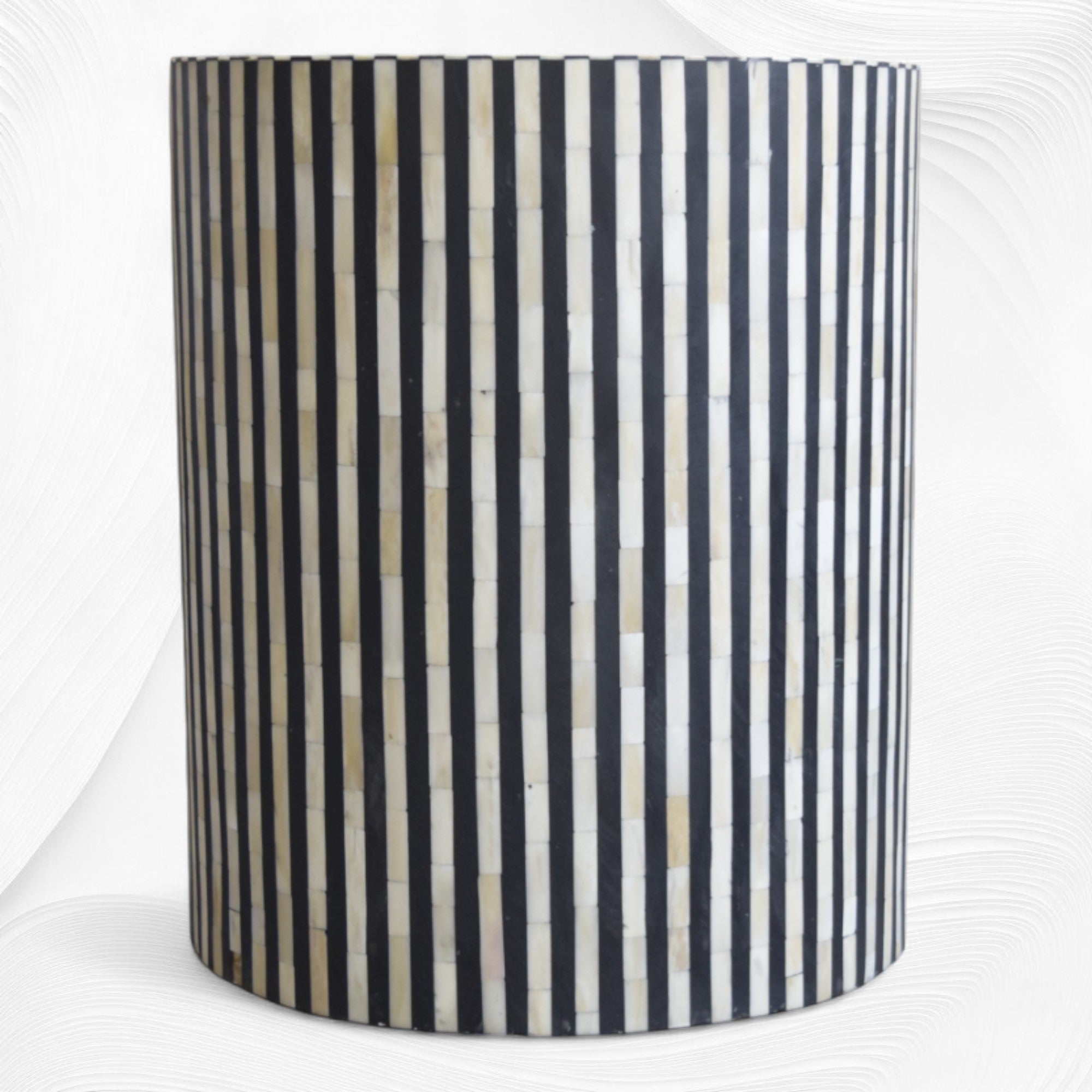 Bone Inlaid Round Side Table by Luxury Handicrafts is inlaid by hand to create an intricate stripe pattern. On top of that, we added black color to smooth things out, making it an ideal spot to rest a drink, a book or both.