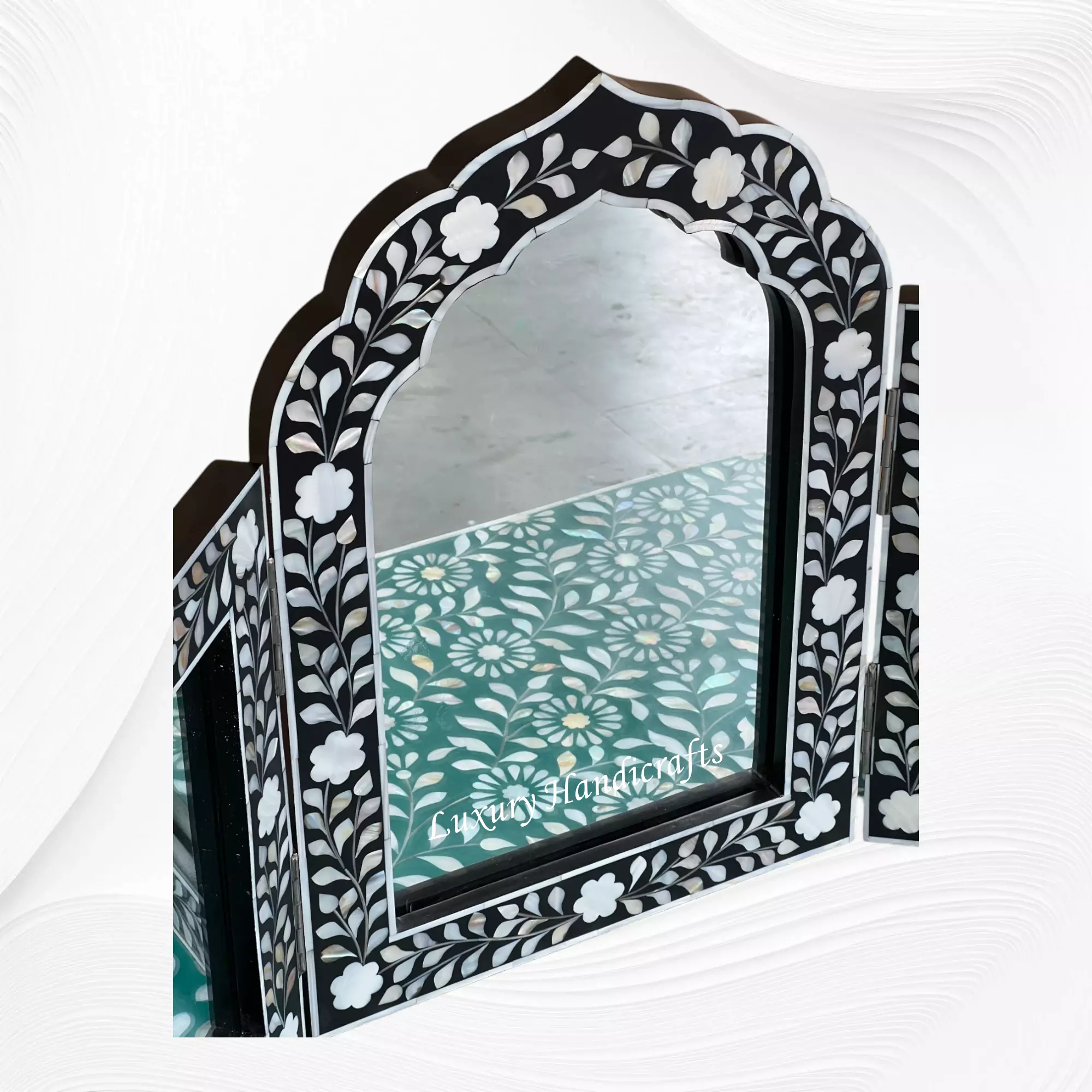 This designer Mirror is one of the latest top picks ! This beautiful piece is certainly a timeless investment, that will add a modern elegance to your home. Perfectly sized to go in your any room. Completed with intricate handmade mop inlay inlay detail.