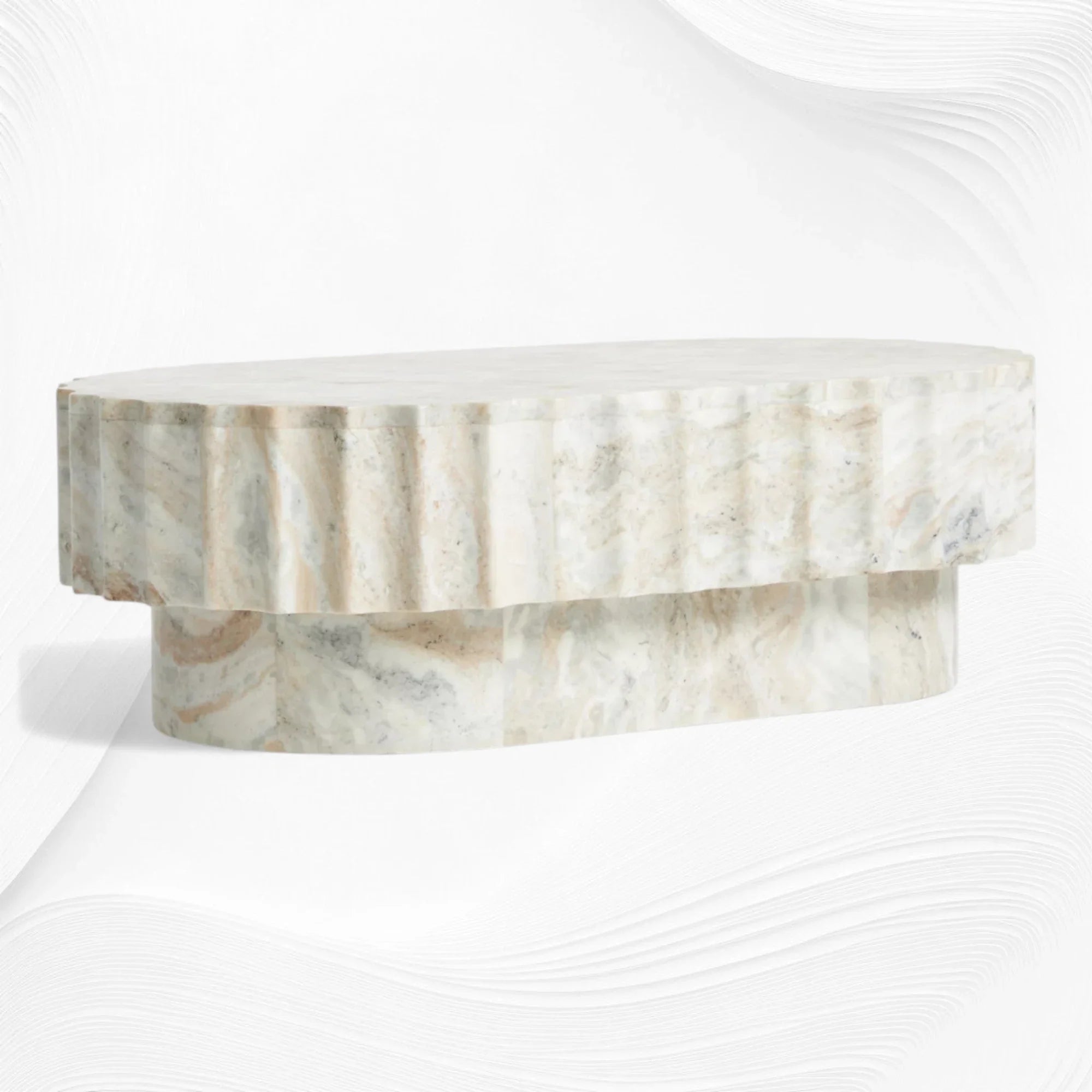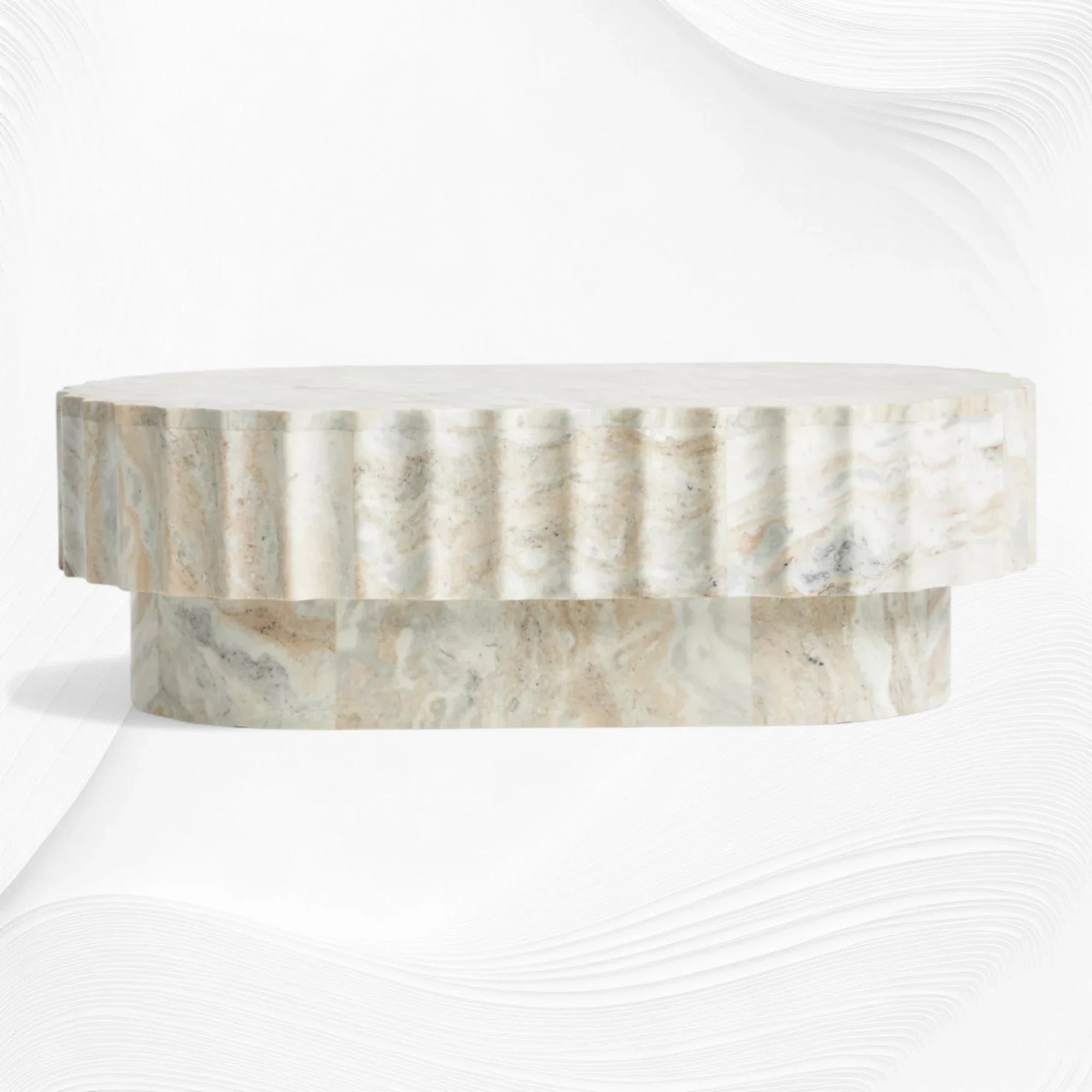 Featuring large, fluted edges and a solid base, the Jolie Marble Coffee Table is an eye-catching piece that's perfect for displaying books and flowers alike.