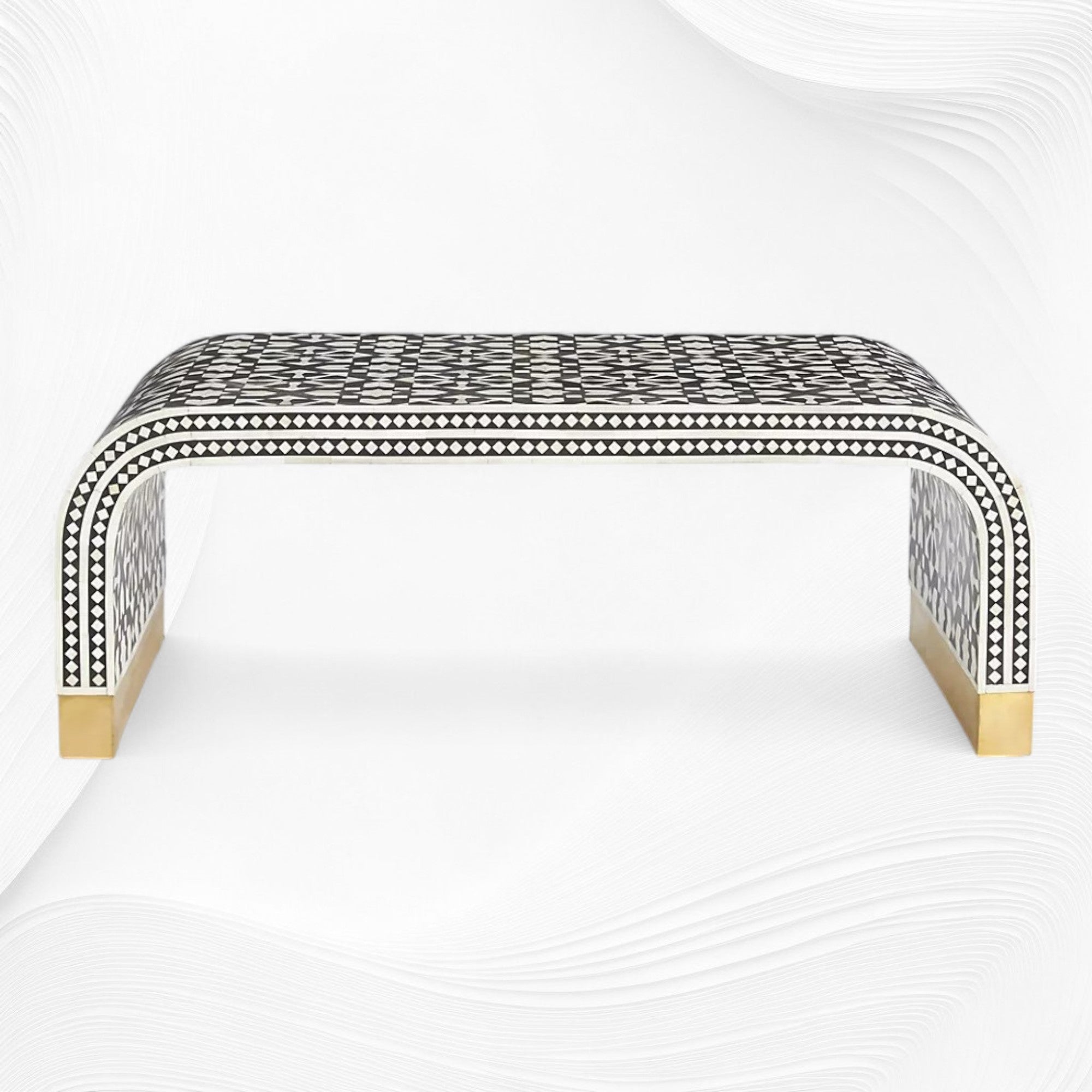 Bone inlay gives a natural, rustic look with a matte finish, while Mother of Pearl inlay shines beautifully with its iridescent glow. Both materials can be used in different patterns on any furniture or homeware items in our online store.
