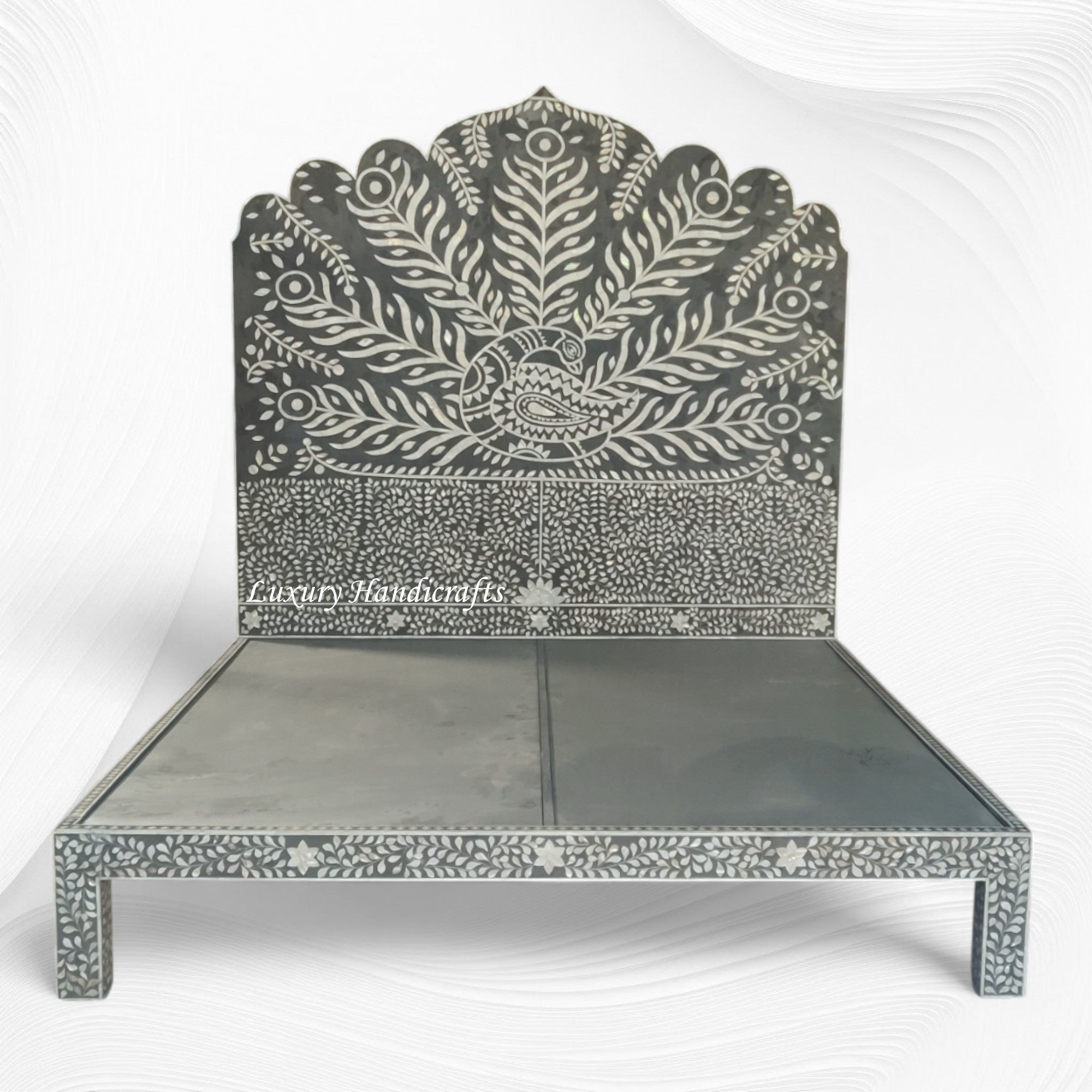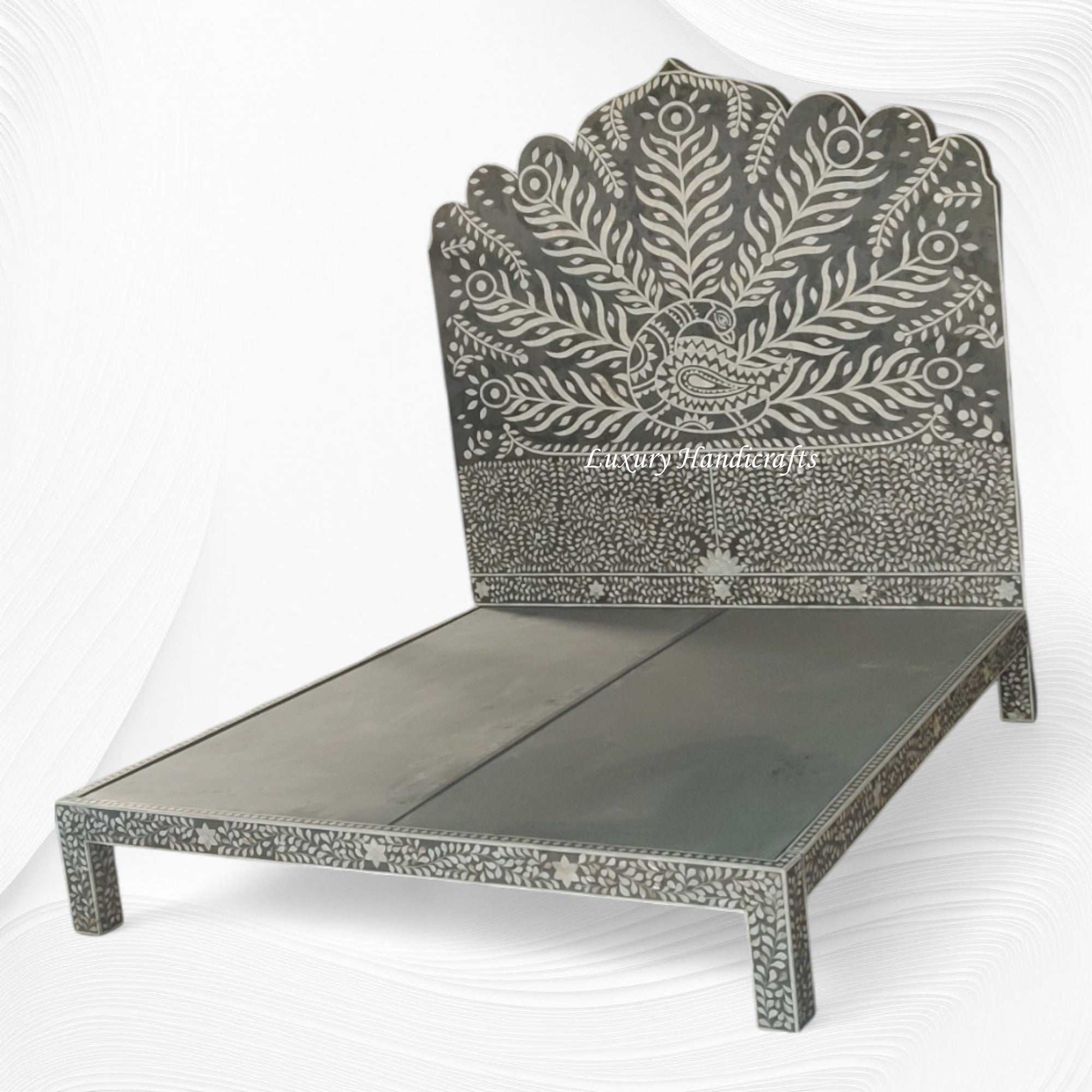 Constructed by Skilled Craftspeople at Luxury Handicrafts in India, This bone inlay King Bed can spice up the look and feel of Your Bedroom. The stunning design is bolstered by the fact that its easy to assemble and its constructed with a sturdy mango wood frame to ensure durability over the long haul. This is exactly what you would be getting with this exquisite bone inlay bed.