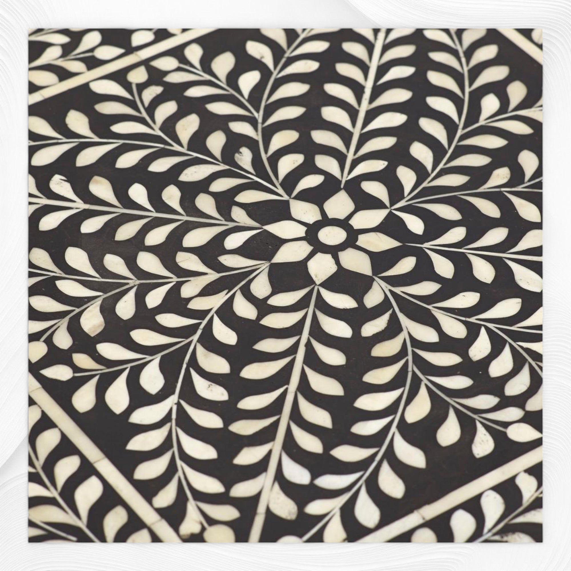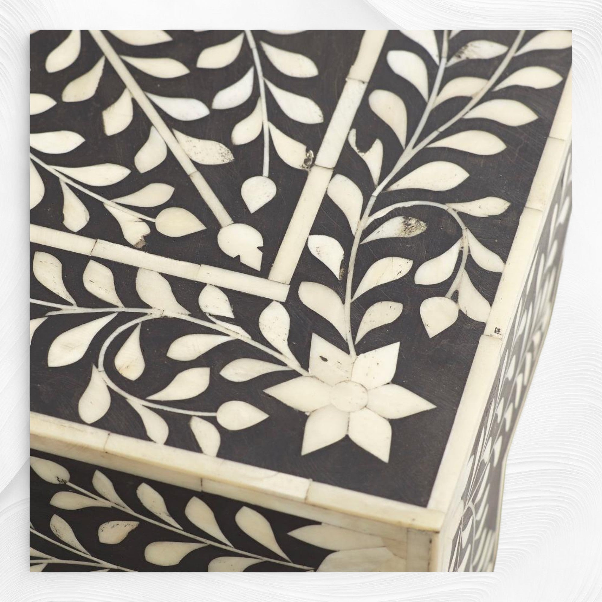 # Quality Sourced Bone Inlaid in Floral Design with Black Resin