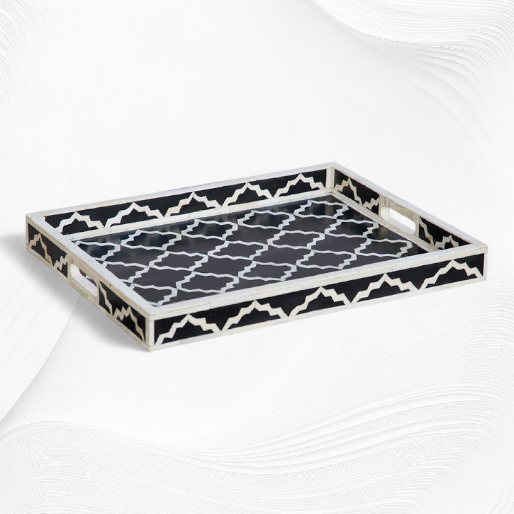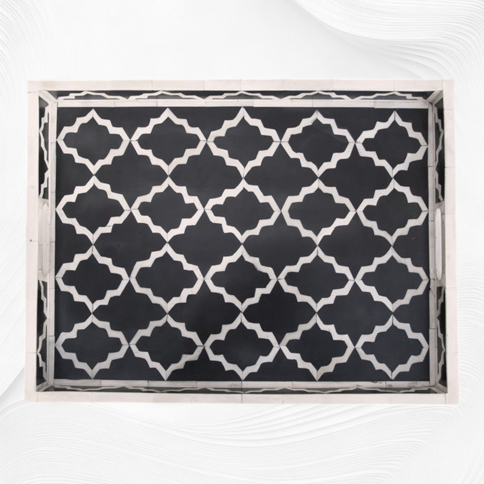 Cheery, bright and graphically intriguing, this decorative tray is the perfect finishing touch in any well-dressed interior. Use this bone inlay ottoman tray along with a cozy throw blanket in a den or bedroom or give it as a gift to the fabulous hostess in your life who already has everything.