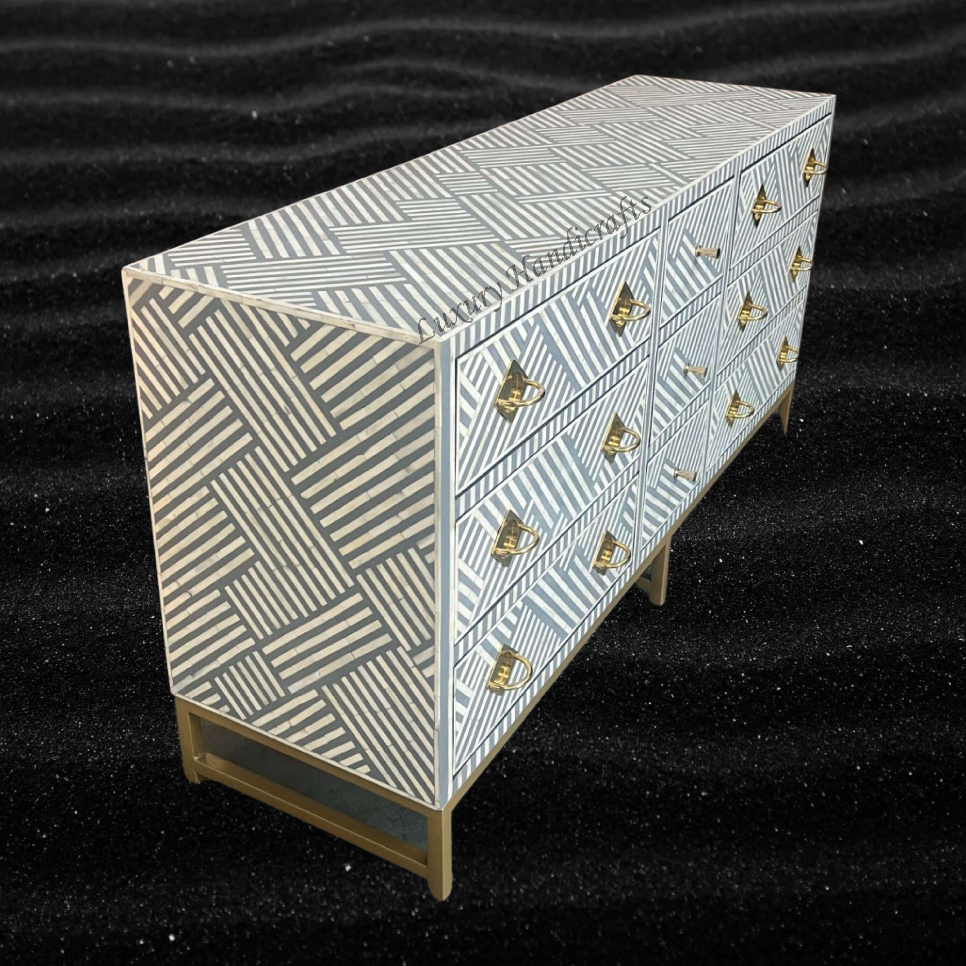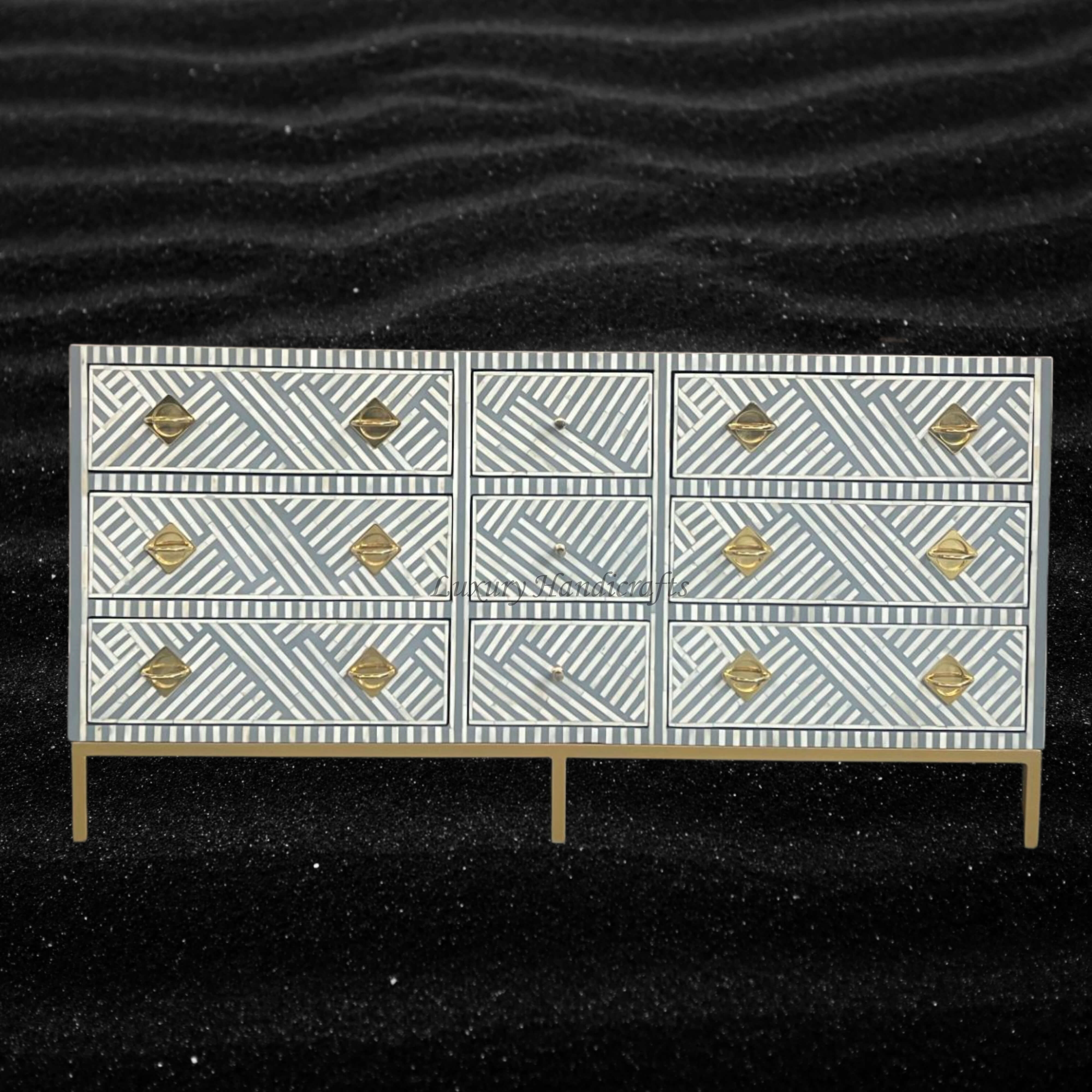 # Quality Sourced Bone Inlaid Chest with 9 Drawers