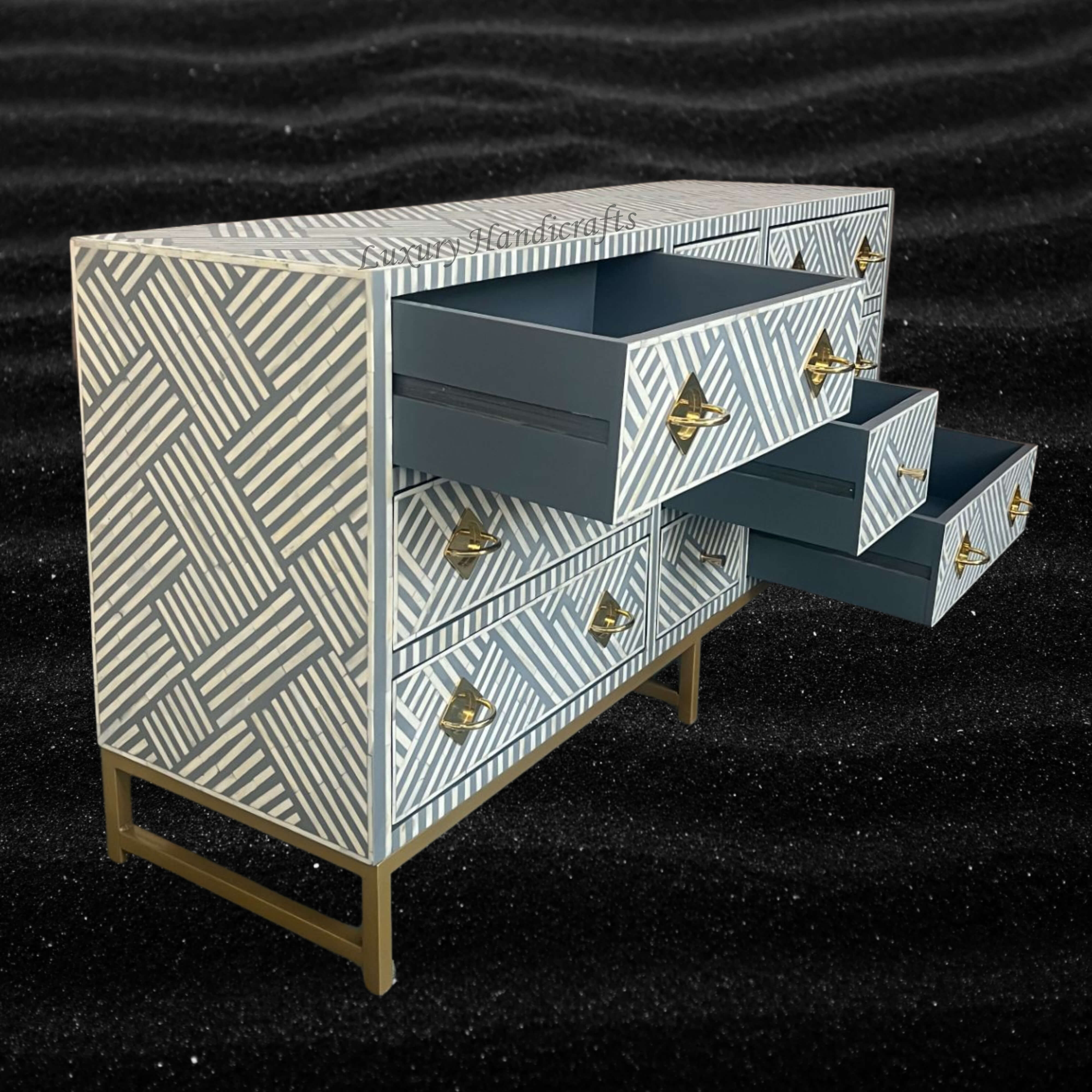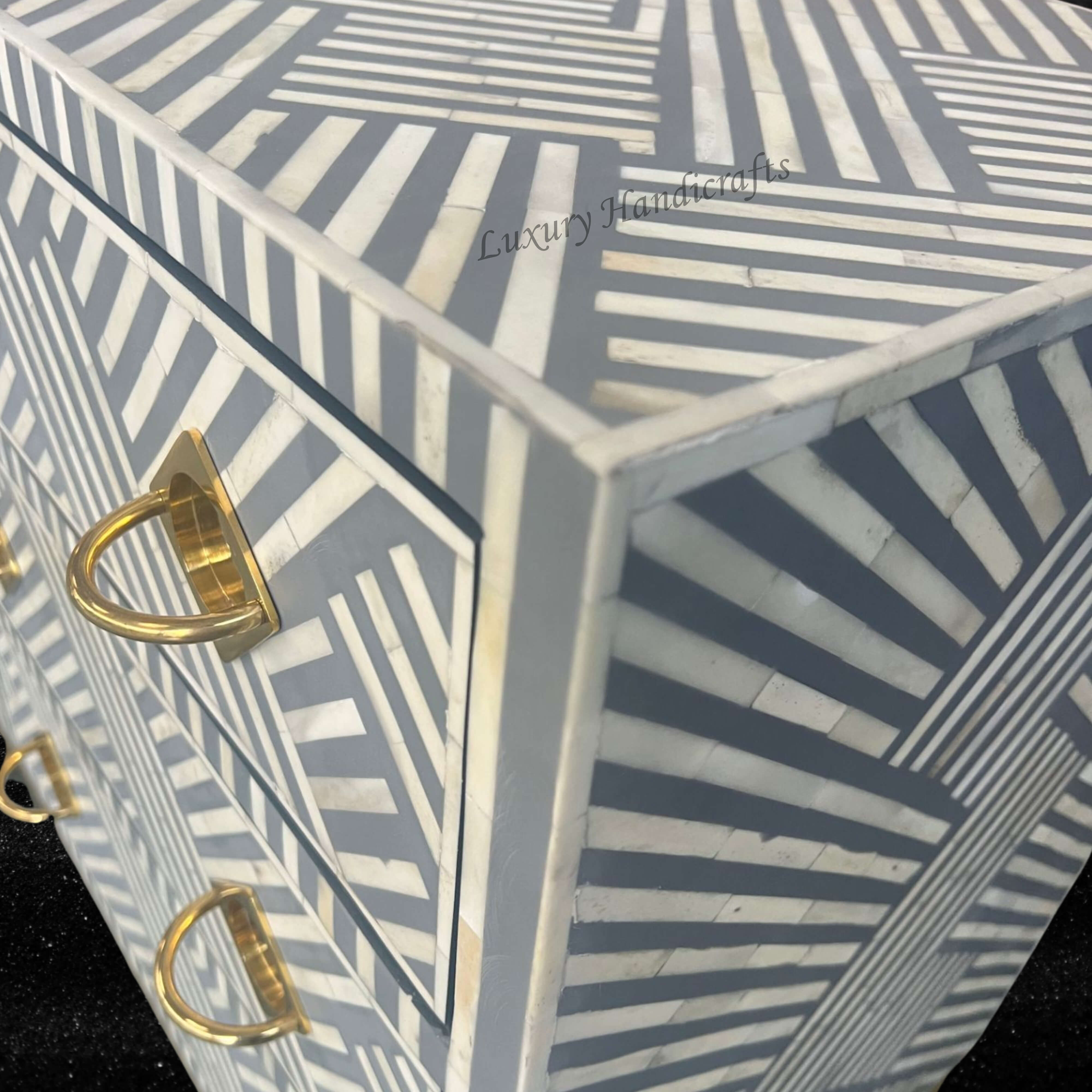 Handcrafted to perfection, this bone inlaid Medium sized chest of 3 drawer is perfect luxury. Fit it at any space in the house and make the space look luxurious.