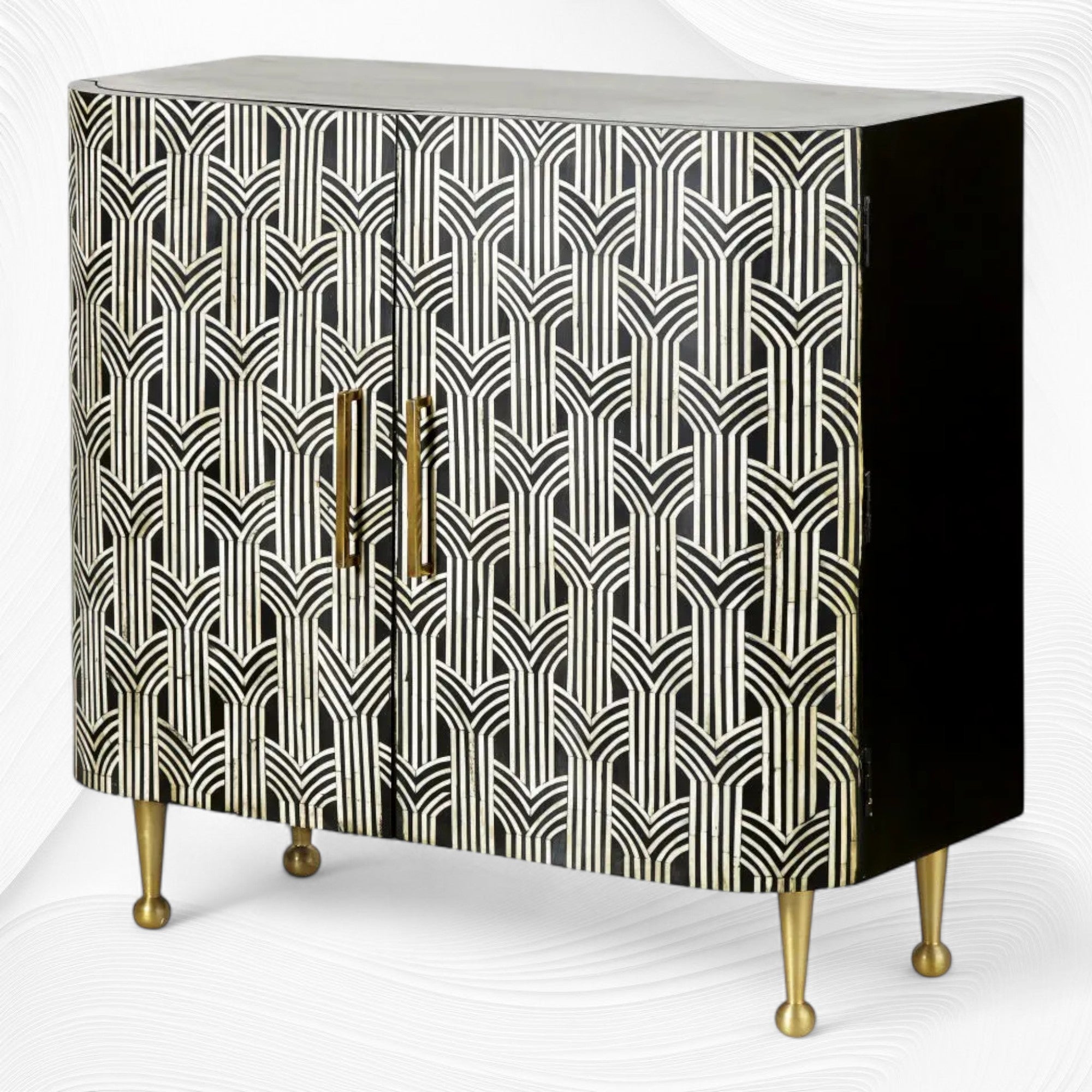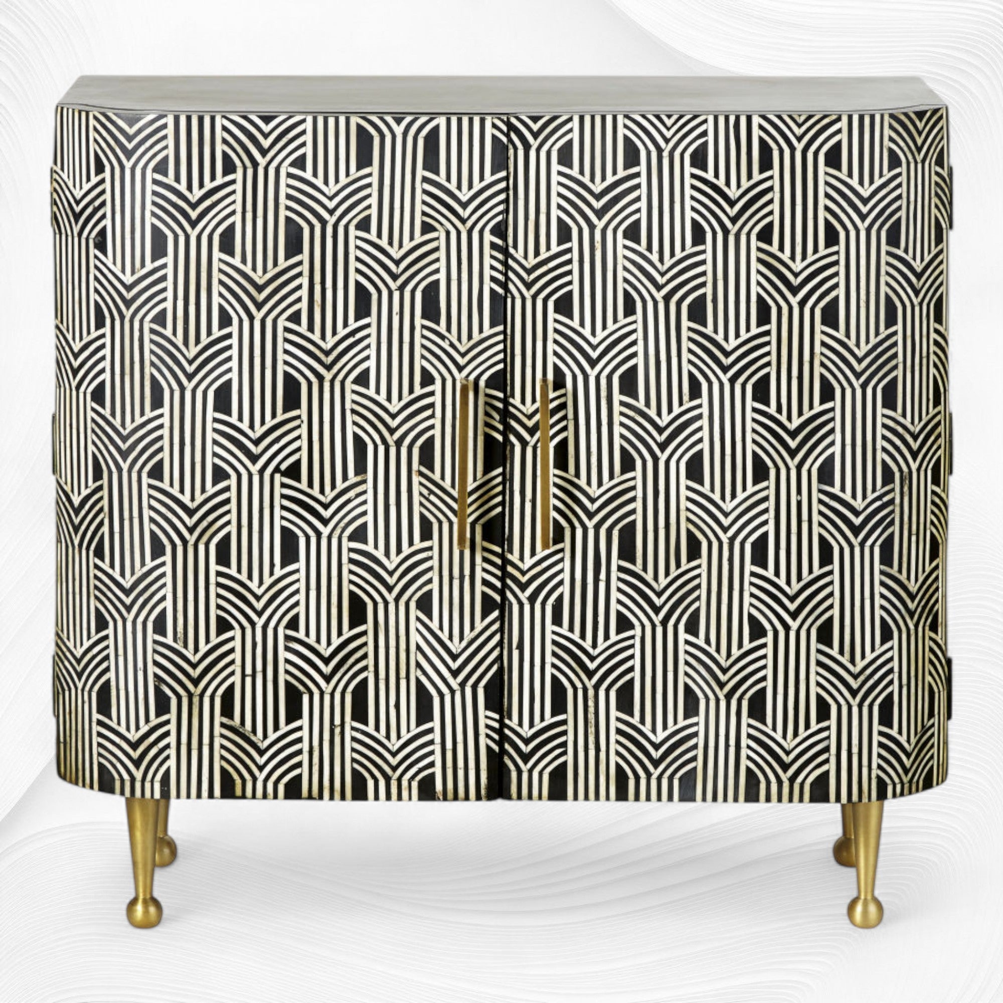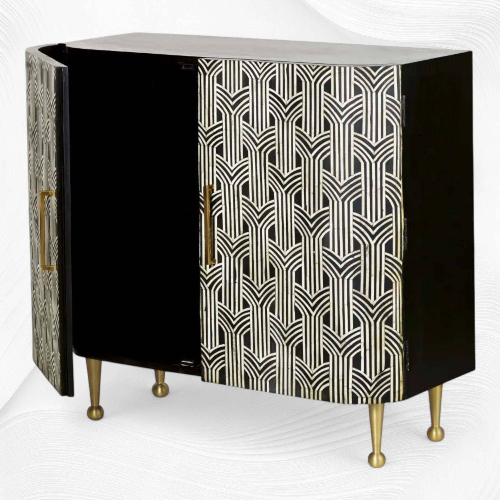 Looking for something original for your little cocoon? The slightly extroverted Sprinkle Black Bone Sideboard with Prints will bring your room to life. The sideboard boasts a timeless design with two doors, offering ample storage space for various items, from dinnerware to linens. Its versatile size makes it suitable for use in dining rooms, living rooms, or even bedrooms, adding both functionality and style to your home decor.