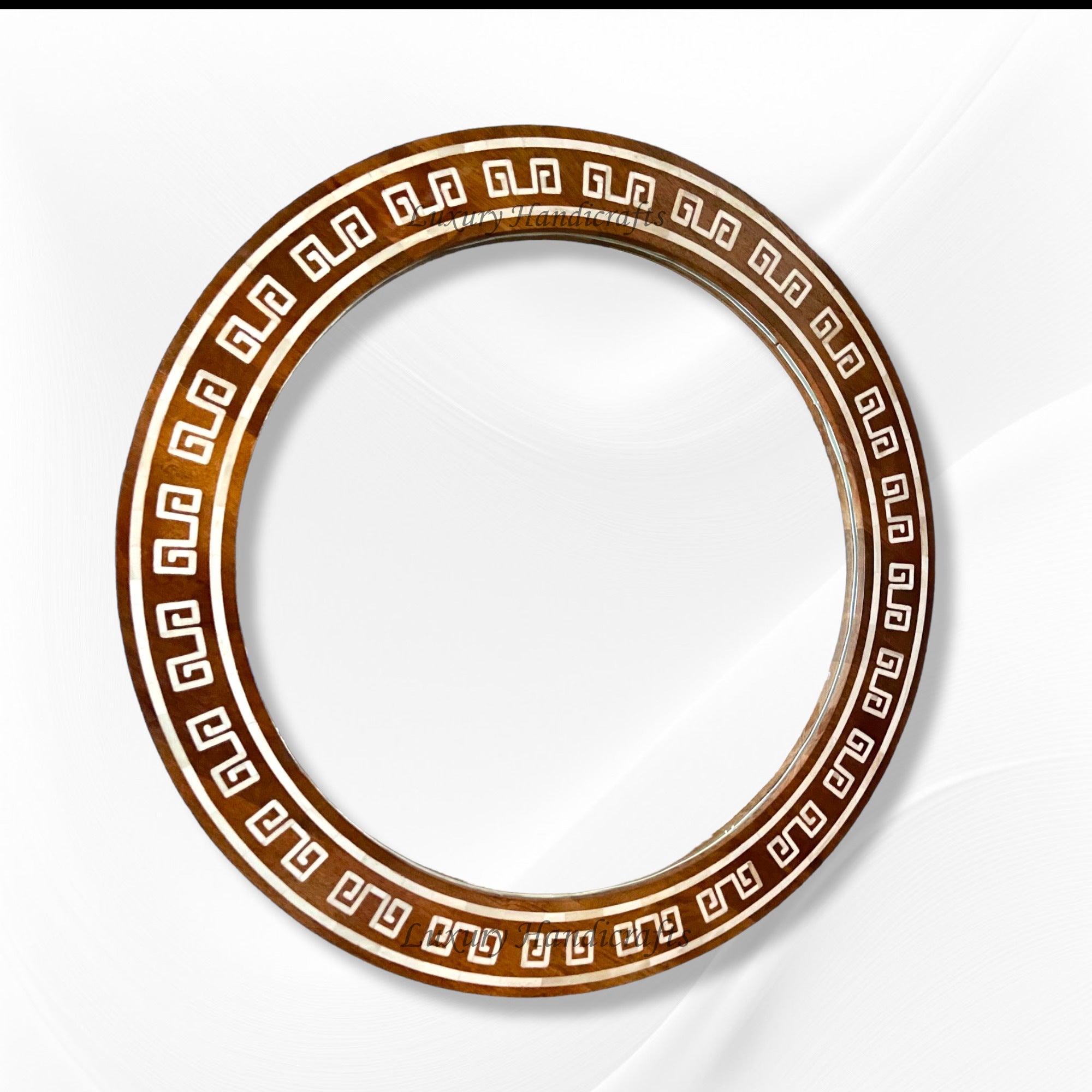 Vintage inspired bone inlay mirror with a custom Greek pattern
