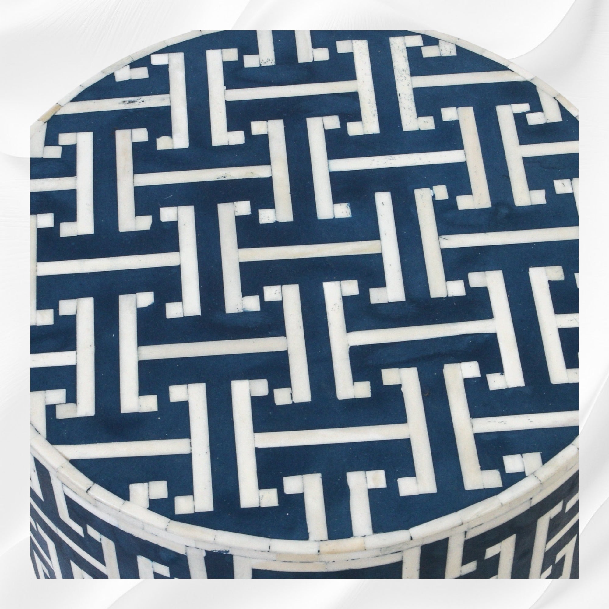 The simplicity of our Bone Inlay Drum Side Table makes it a go-anywhere accent piece. Its slim design allows you to pull it close to a sofa or chair, offering a handy landing spot for drinks or a book. Pair it with a bone inlay Coffee Table for the ultimate living room wow factor.