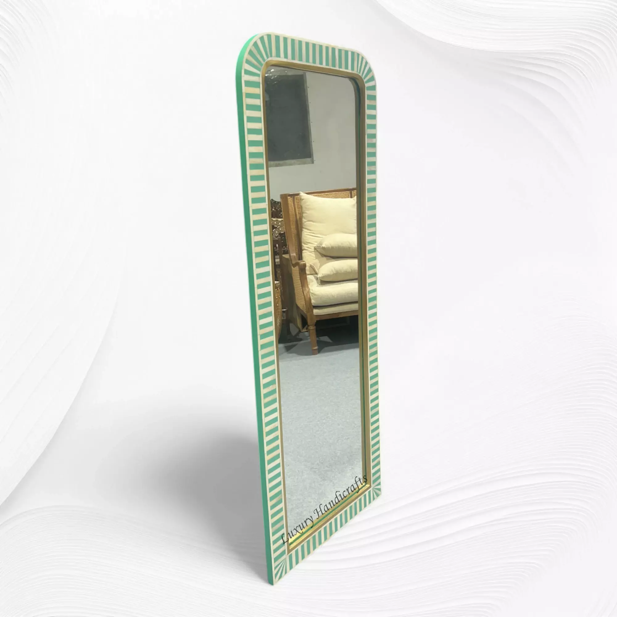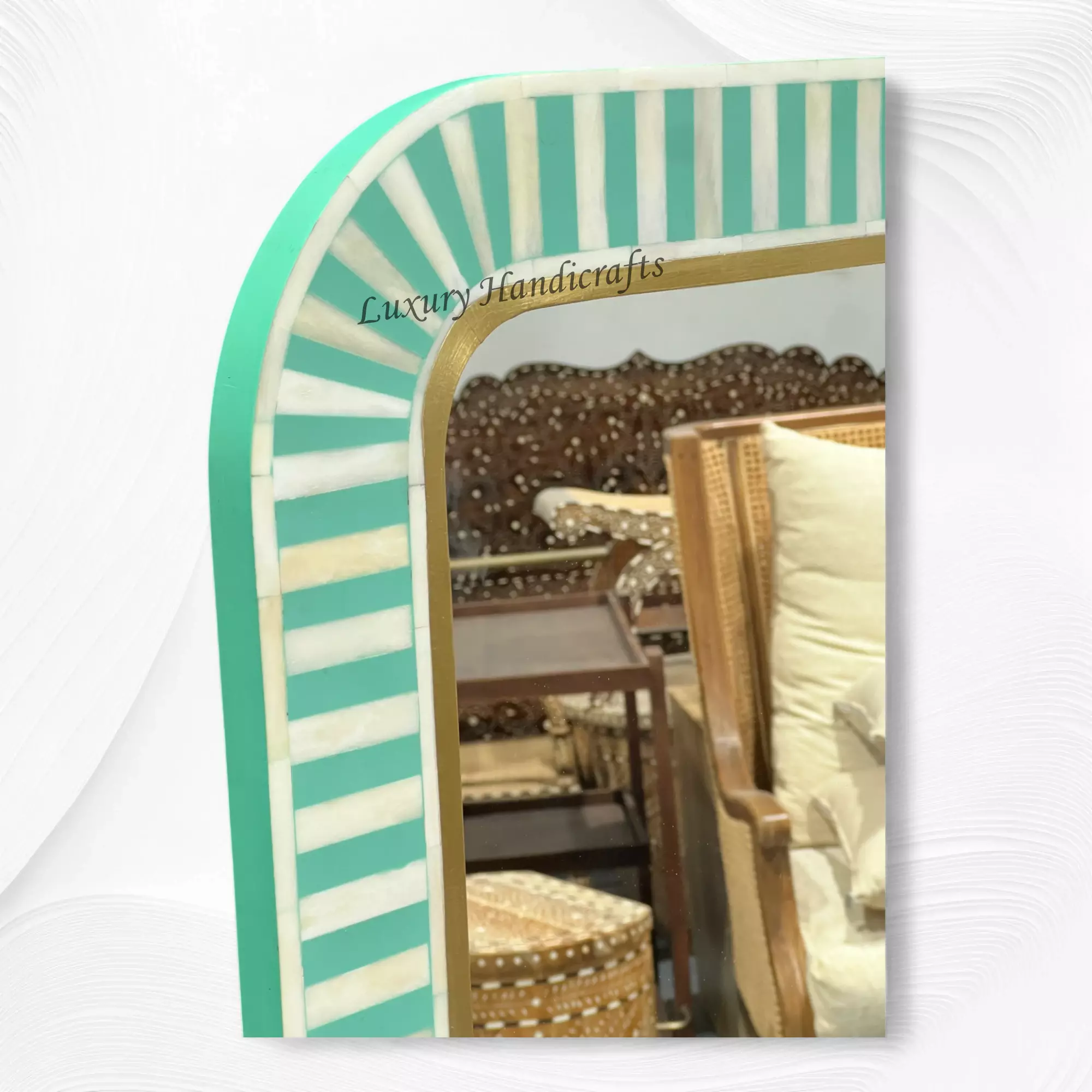 Handcrafted with stunning bone inlay, this mirror brings a natural elegance to any space - whether hung above a bedroom vanity or an entryway table.